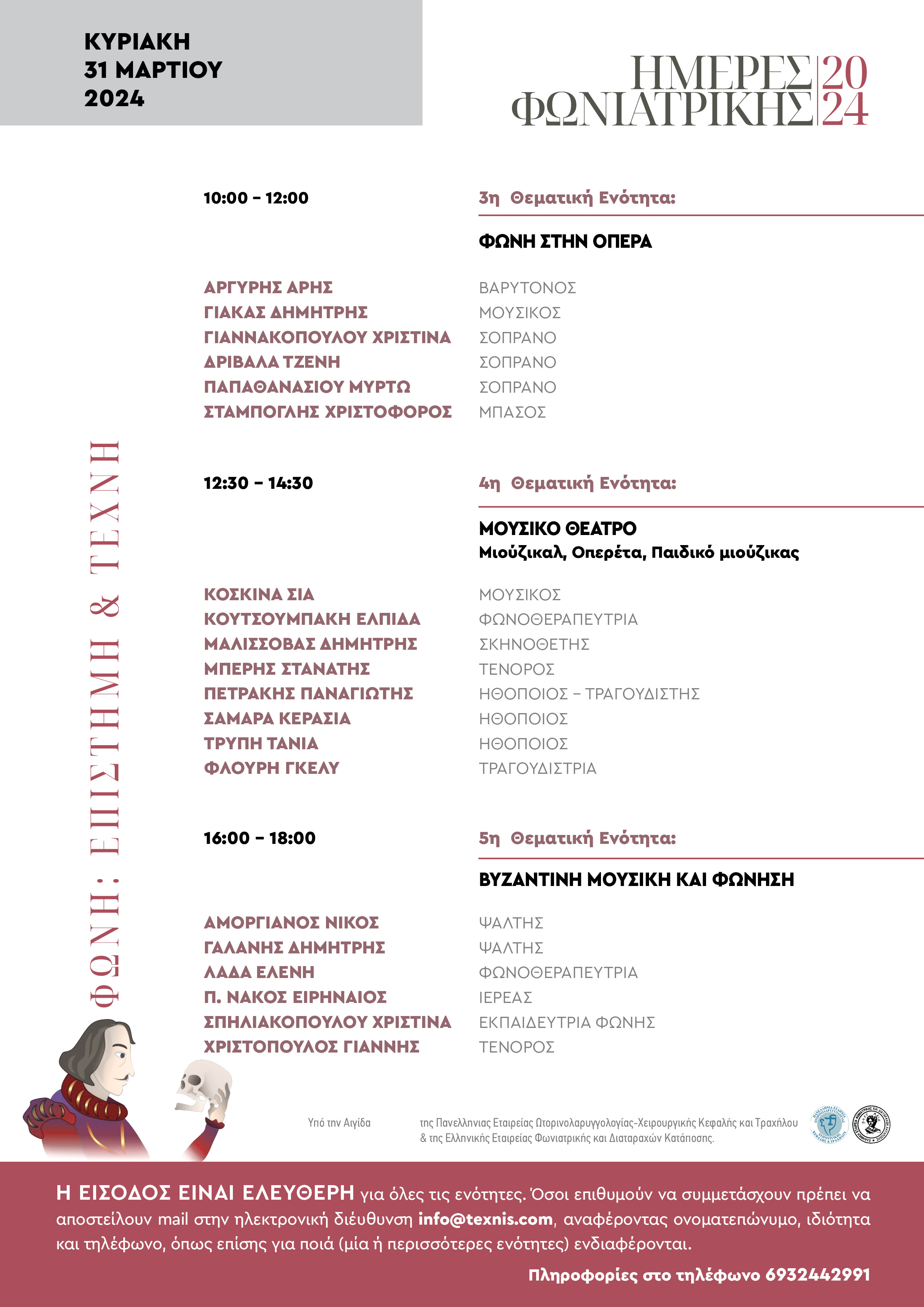 - «ΠΑΡΟΥΣΙΑΣΗ ΠΕΡΙΣΤΑΤΙΚΩΝ ΦΩΝΙΑΤΡΙΚΗΣ» για ιατρούς και επιστήμονες ειδικοτήτων φωνής